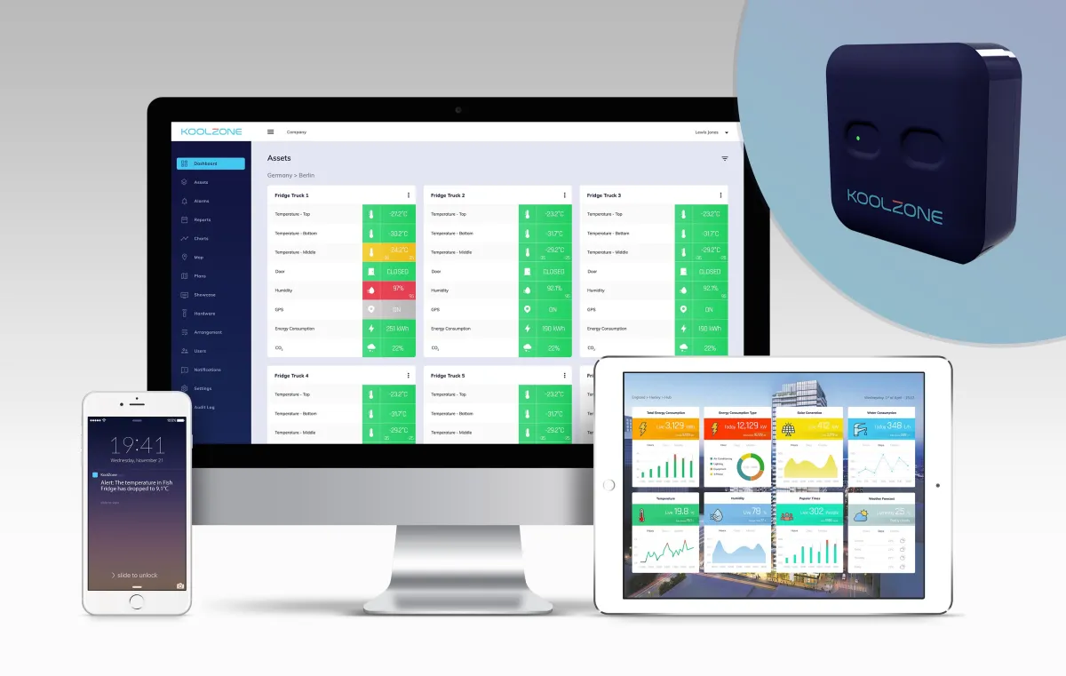 KoolZone-Sensoren spielen in allen Bereichen eine große Rolle, da wir wichtige Parameter wie Druck, Feuchtigkeit, CO2, Strom, Energie, Lecks, Ereignisse, GPS und Temperaturen von -200ºC bis +300ºC für kleine Unternehmen und multinationale Konzerne gleichermaßen überwachen und auf Knopfdruck verfügbar machen können.